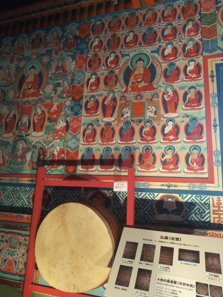 さて、お次は、エベレストのある世界の屋根、そして仏陀の生まれた南アジアの国ネパールです。こちらはチベット仏教の寺院が展示されてます。