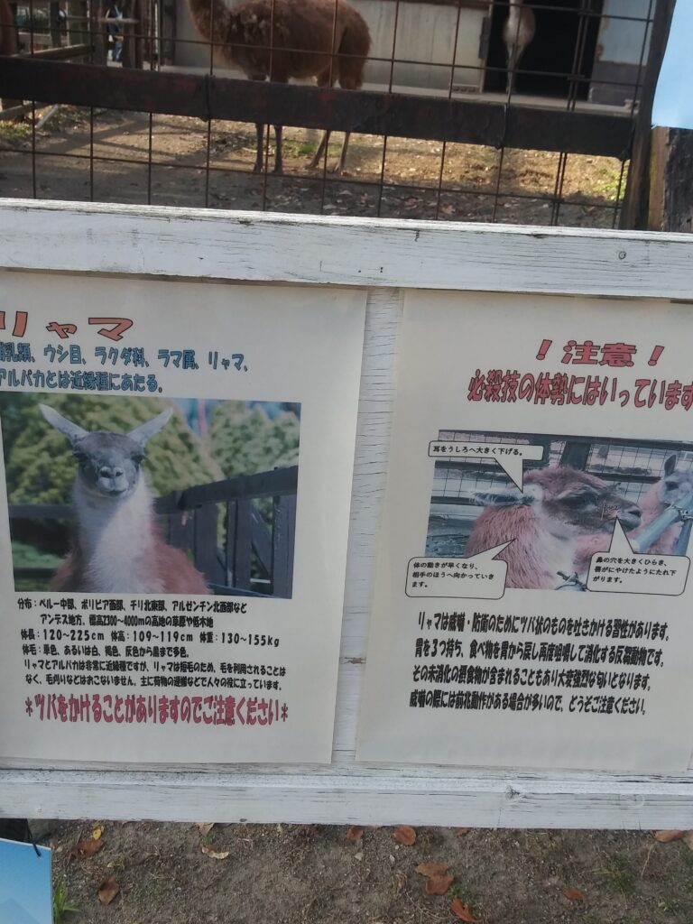 愚かな人間をしり目に。ここリトルワールドではリアル、リャマさんが飼育されてます。首が長く、お毛毛もモフモフでなかなかキュートです。