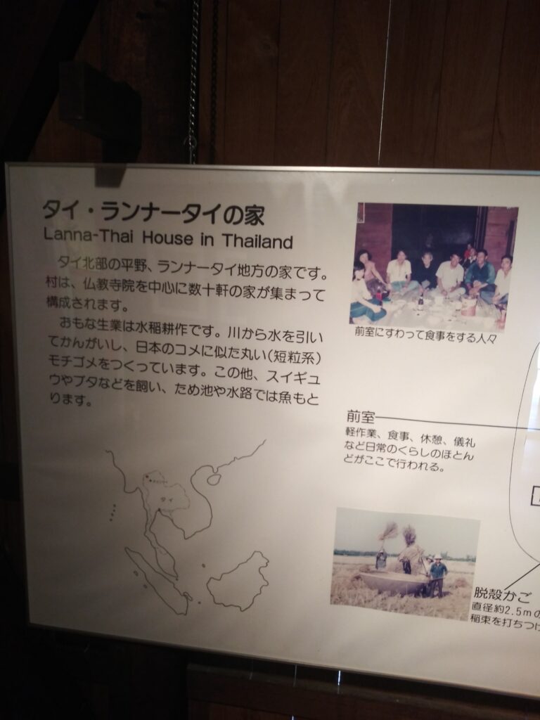 このおうちは、タイ北部のランナータイのおうちなのだそうです。水耕がお盛んなのだそうです。三十年前の米不足の時は、長細いタイ米が話題になりました。子どもながらに少し記憶はあります。