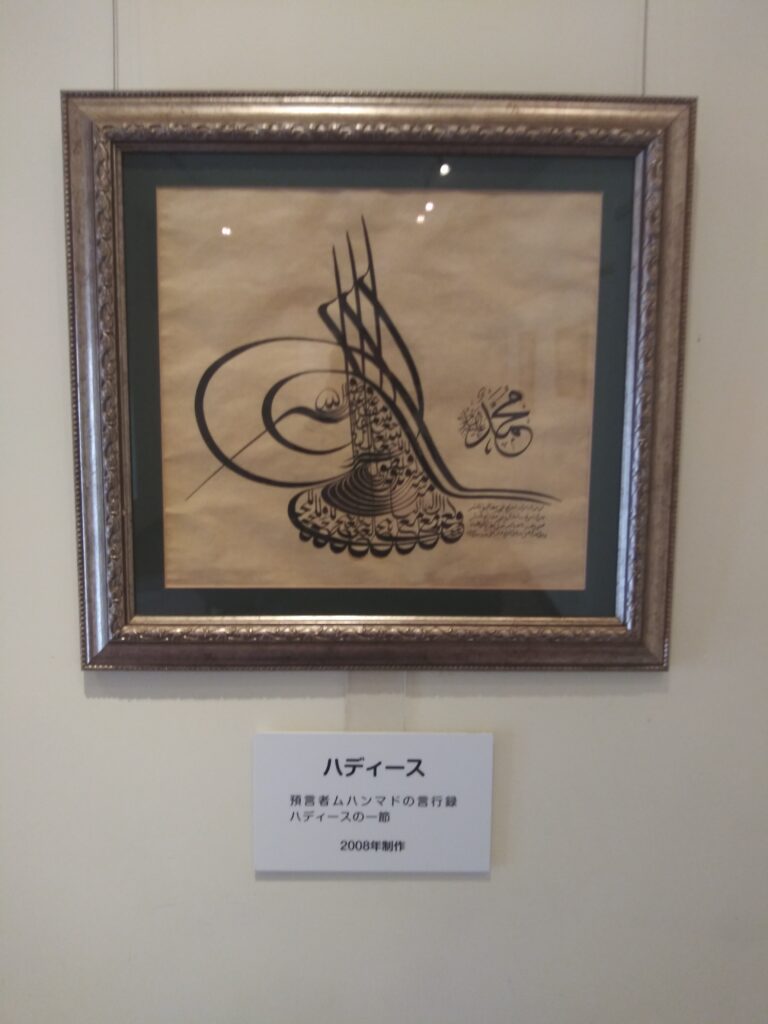 日本にも書道はありますが、イスラム世界にも書道はあるのですね。私も昔、書道を習ってました。ムハンマドさんの言行録らしいですが、何と書いてあるのかは分かりません。なんとなく芸術性を帯びてます