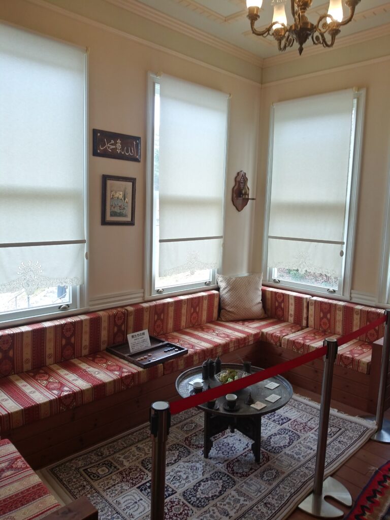 お客さんをもてなす居間です。ボードゲームが置かれてます。イスラム教は御客人をもてなす文化があるみたいですね。このボードゲームはどうやってやるのか?