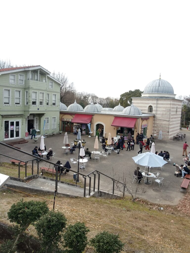 トルコエリアの広場とお土産屋さんです。こちらでトルコアイスやお菓子などを購入することもできます、ご当地のお土産も売ってるのもリトルワールドの利点です。
