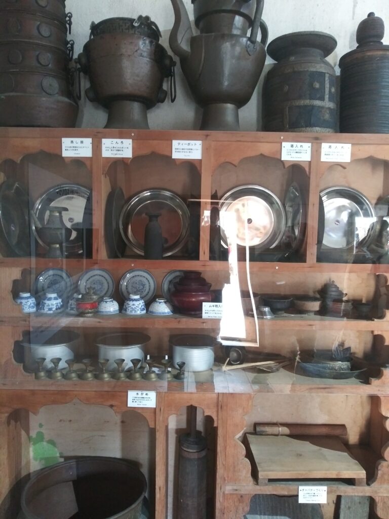 昔、チベット寺院で使われていたコンロや蒸し器、ティーポッドです。今は、どんな器具や機械を使って坊さんたちは生活しているのでしょうか。サムスン電子の洗濯機に、東芝の炊飯器、タイガーの湯沸かしポッド、そしてスマホを使って生活してるのでしょうか。
