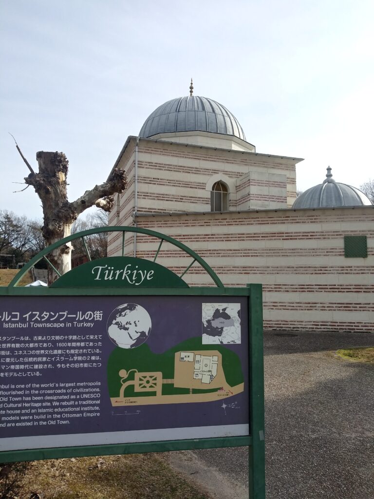 イスタンブールにあるイスラム学院を再現した建物です。ネギボウズみたいな巨大な屋根が特徴です。イスタンブールはバルカン半島にあって中東とヨーロッパの境目にあります。旧市街は世界遺産に登録されているようです。こちらも1度行ってみたい。