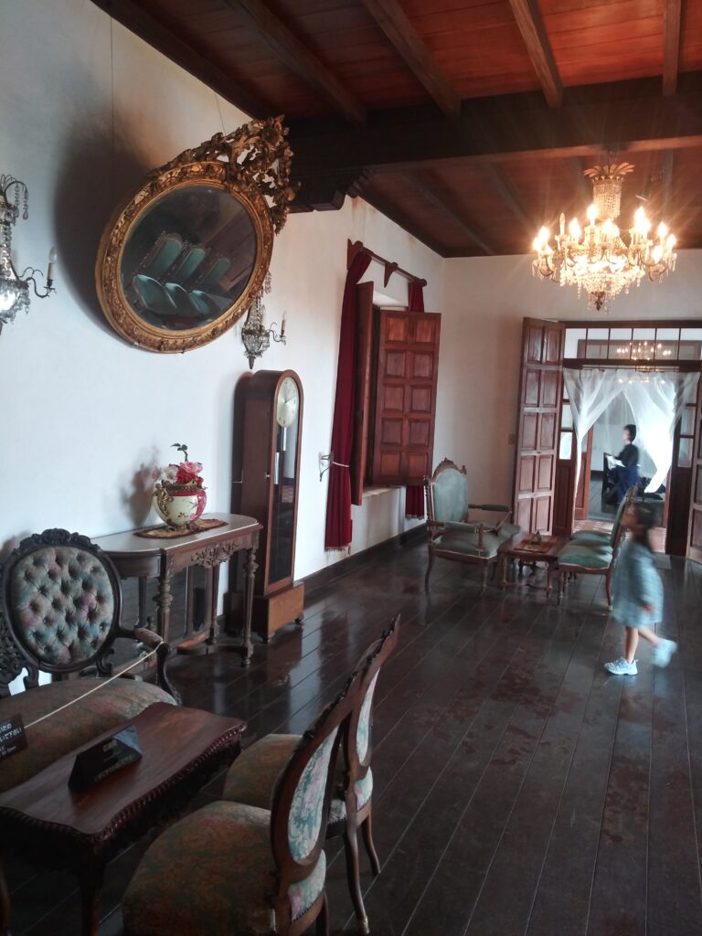 領主殿のアパートの内部です。シャンデリアも吊るされて、思いっきり西洋風です。ちびっこも走り回れるほど広い。日本の社畜など6畳一間のワンルームマンションで暮らしてたのに。21世紀の日本の社畜VS19世紀のペルーの農園領主。幸福度はどっちが上か。