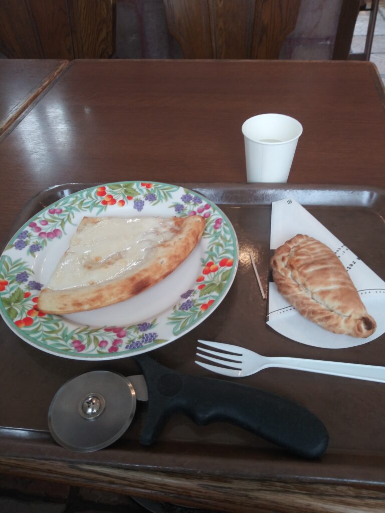 こちらのイタリアアルベロベッロのおうち、中にイタ飯のレストランもあります。チーズピザと、、、、これはえーーと、忘れちゃいました。でも、ピザおいしゅうございました。こちらでは、ピザのサイズもクオーターサイズから選べます。食べてばかりですな。