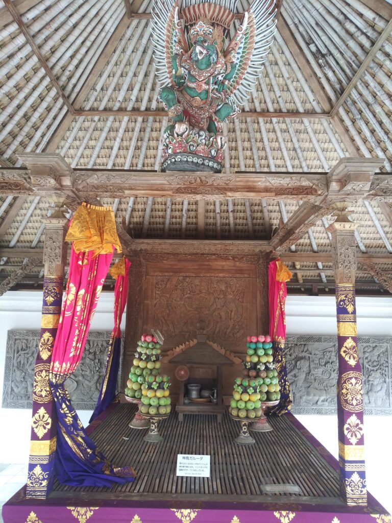 インドネシアの伝説の神の鳥「ガルーダ」です。お部屋の天井に飾られるとは、人々に頼りにされ慕われてますね。これで、泥棒さんも控えさせるのか。インドネシアのフラッグ航空会社もガルーダインドネシア航空でしたな。