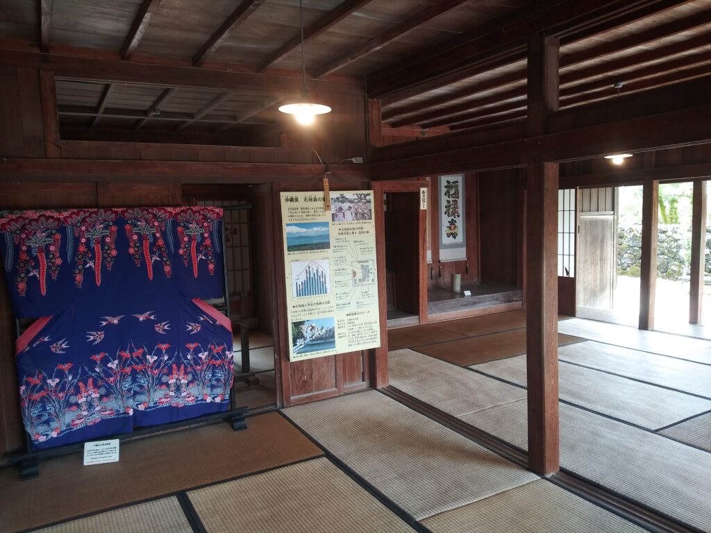 中は畳敷きで、日本本土の建物とあまり差異はなさそうです。風とおしを良くするために壁があまりありません。涼しそうですが、蚊が入ってきそう。
