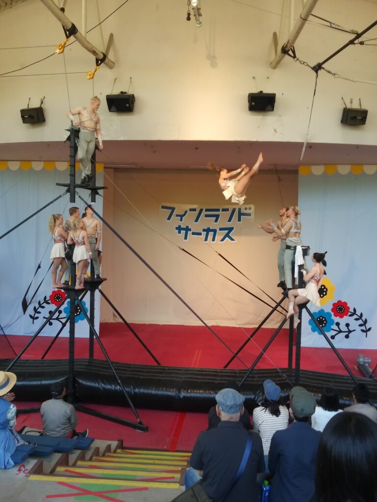 そして、ご覧ください。時々、イベントも行われております。これは、フィンランドのサーカスですね、フィンランドの白人のお姉さまがアクロバットに舞っております。また、お兄様たちの客席乱入での歌謡曲もあり、なかなか楽しゅうございました。
