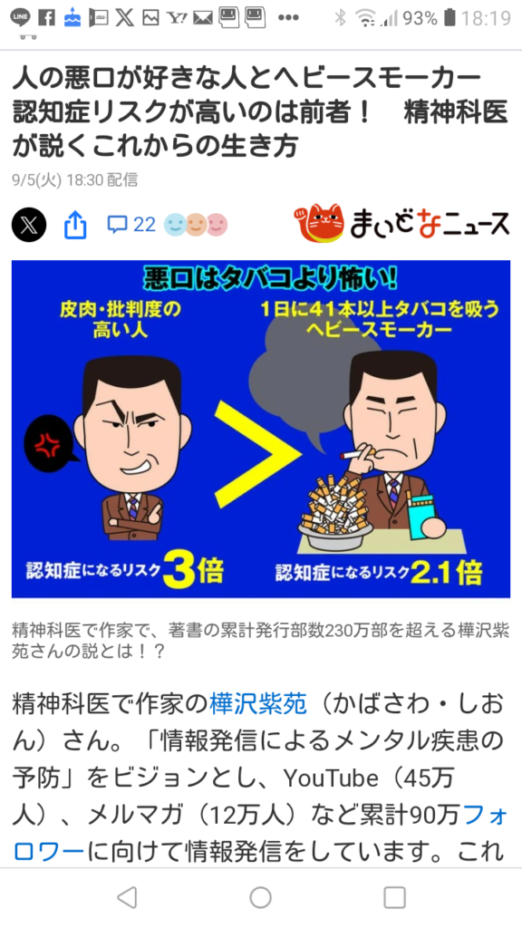 パワハラの人は、攻撃的ですぐ人の悪口をいうけど悪口を口にすると「認知症」になりやすいとのこと。