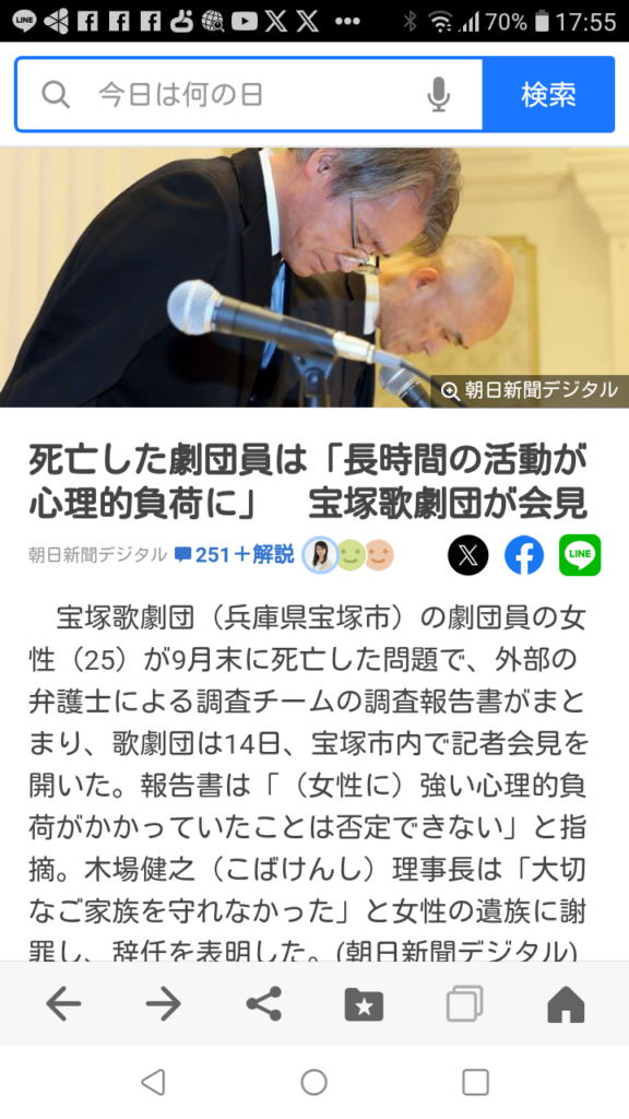 この宝塚歌劇団の過労死事件でも深夜の部屋ノックなど上級生による心理的圧迫すなわち「パワハラ」があったようです。パワハラはこのような悲劇を招くのです。なぜ、このような報道がなされてるのにパワハラが日本社会には多いのか?