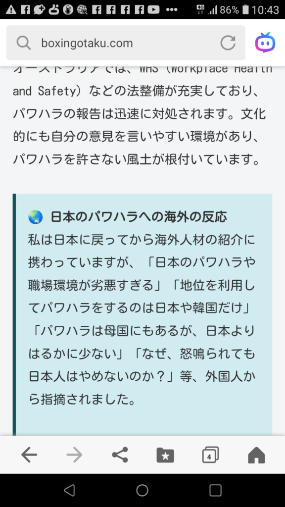 外国の方から見ても「日本のパワハラ事情」は「異様に」映るそうです。日本の恥部となっております。この元社畜「I THINK SO TOO(私も同感)」です。と述べたい。私、owakon。外国の人ともお仕事したが、プンプン丸行為をするのはたいてい日本のミドルです。日本のミドルがすべてパワハラ気質ではありませんが、パワハラ行為者を振り返ると日本のミドルが目立つ。