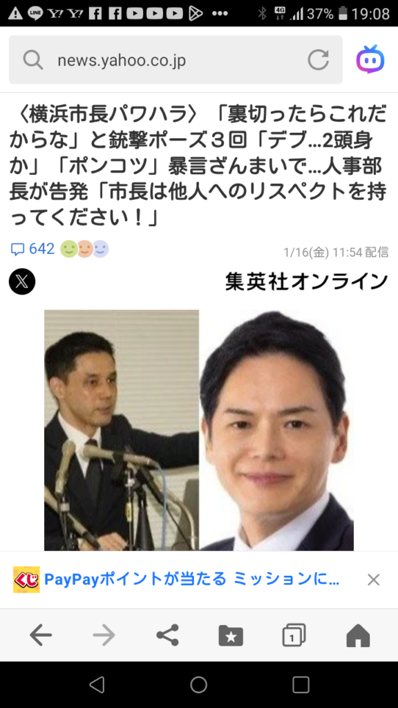 横浜市の山下市長が、部下の人に対して「デブ」「二頭身か」「ポンコツ」などの暴言を放つパワハラをしていたということです。聞けばこの方、横浜市長になる前は、横浜市立大学の医学部の教授職に就いていたエリートだったそうです。嘆かわしいことで残念です。酔っ払いのおっちゃんではなく、こんな高学歴のエリートがこのような粗忽で幼稚ななさりようをするのか。
